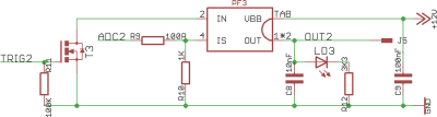 Each Profet is connected to a microcontroller which monitors the current output by each device (on ADC2) at 14kHz, and cuts the circuit if it goes above a configurable level by pulling TRIG2 low. I can reset the circuit electronically: There are no physical fuses, excepting the 100A main battery fuse.